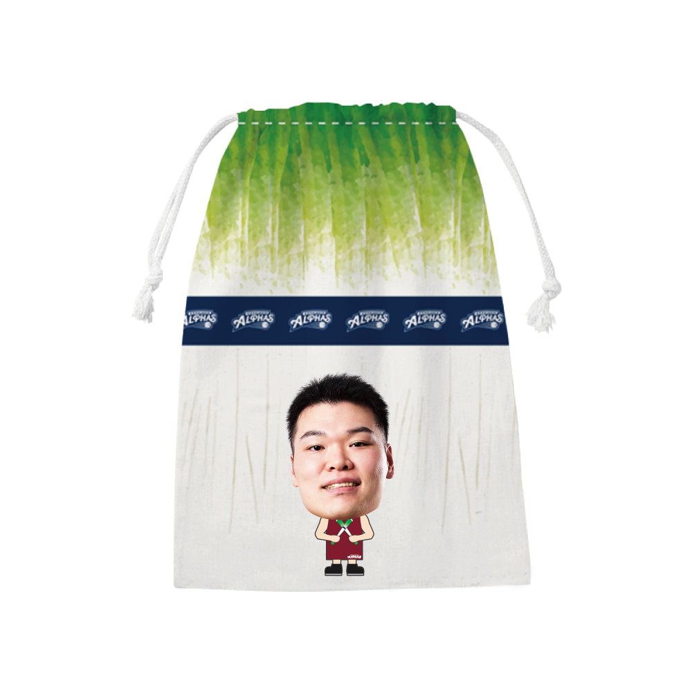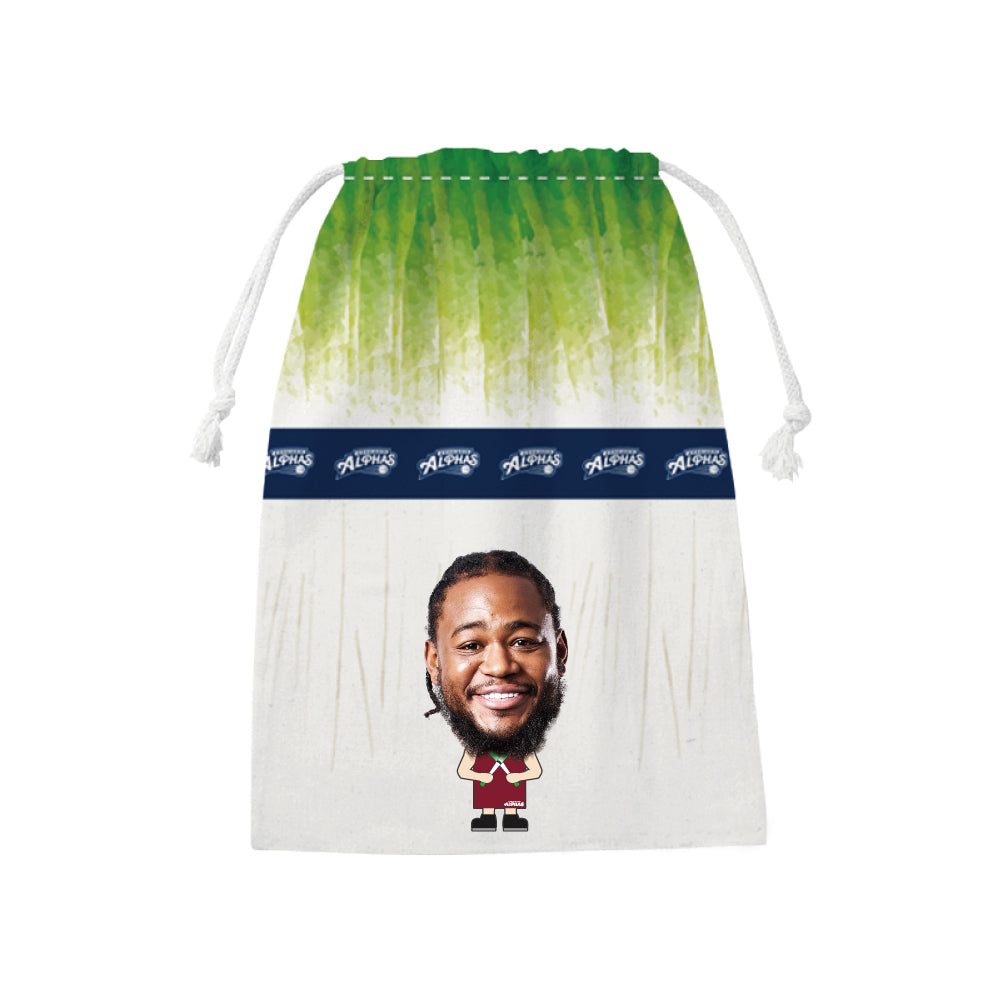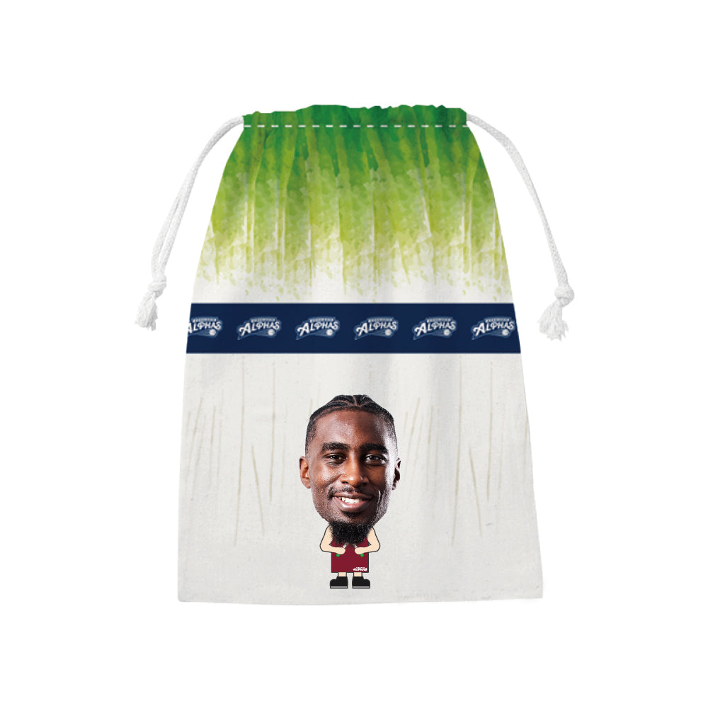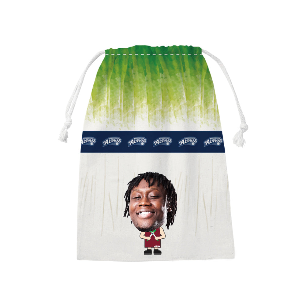 越谷アルファーズ所属選手がプリントされたネギデザインの巾着が受注商品で登場!