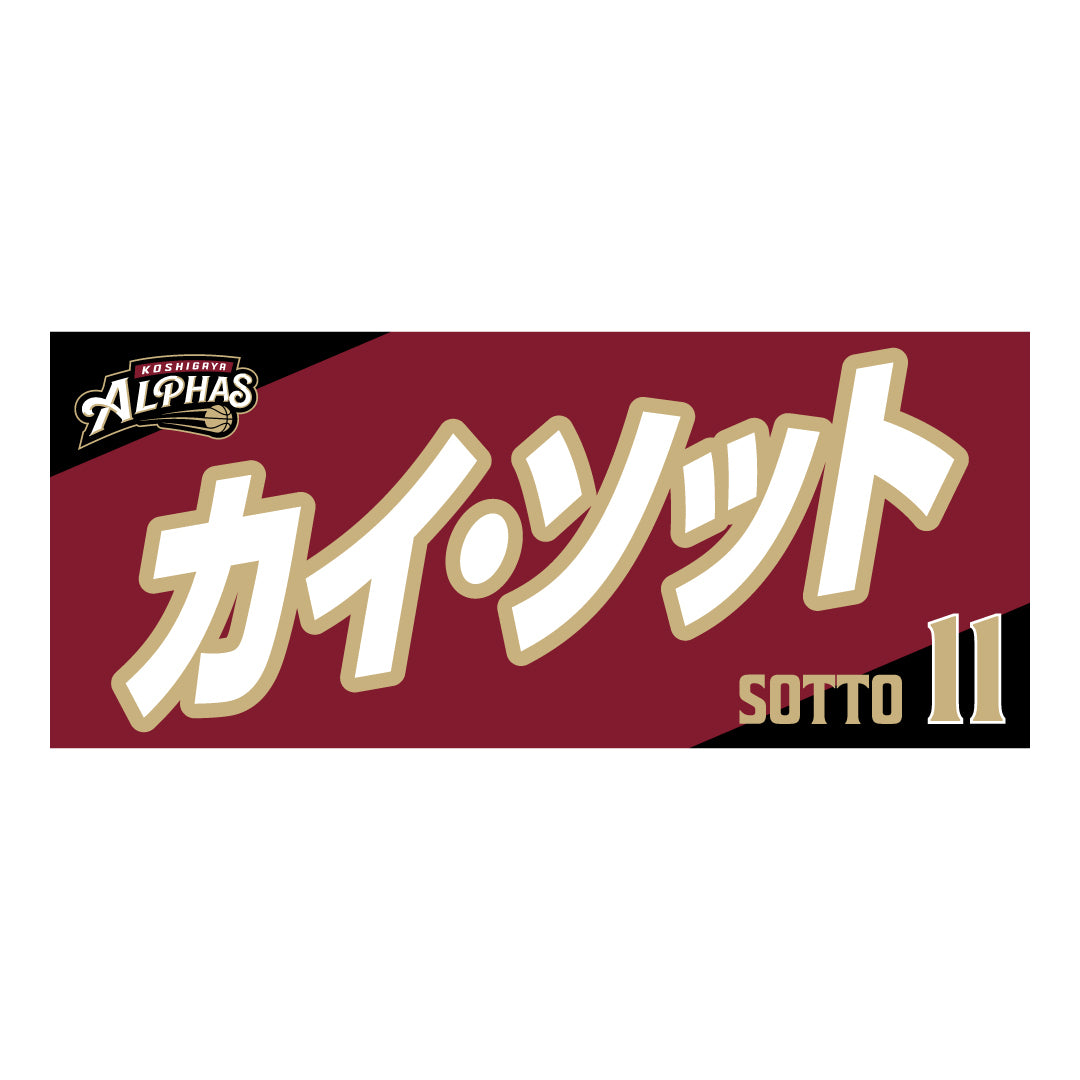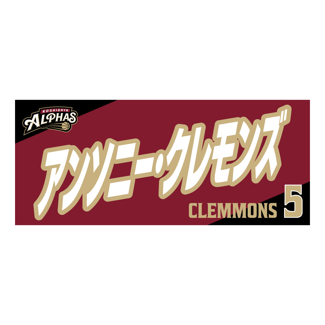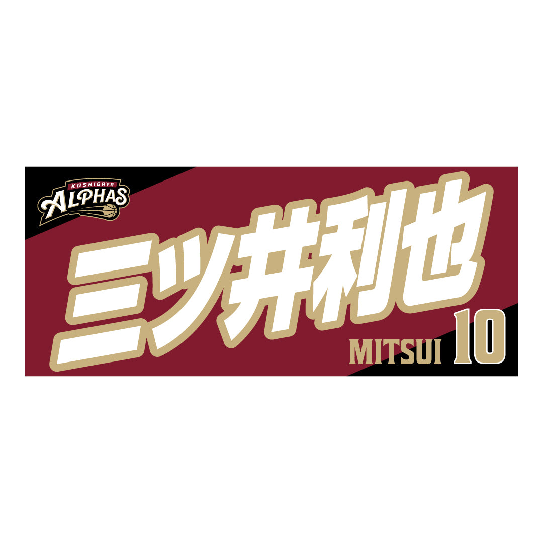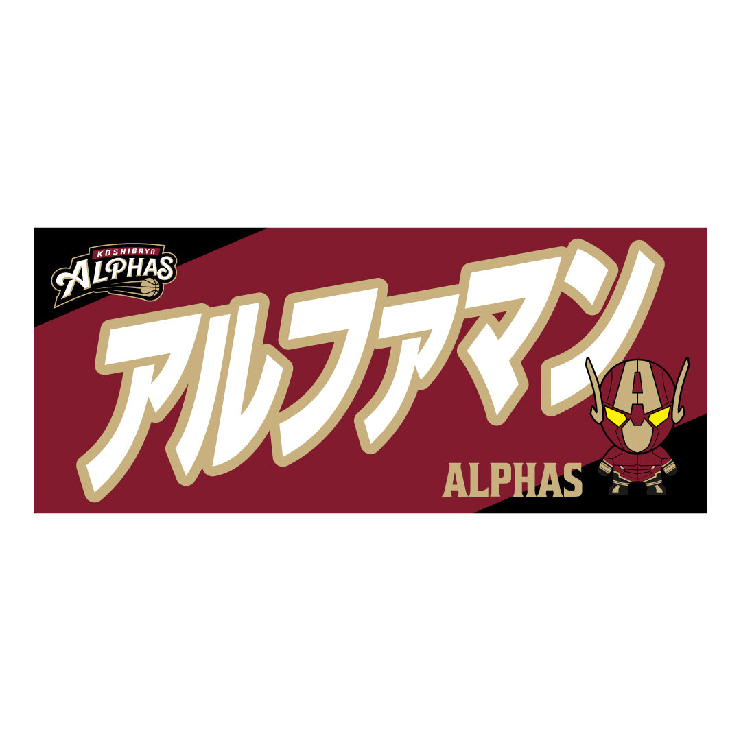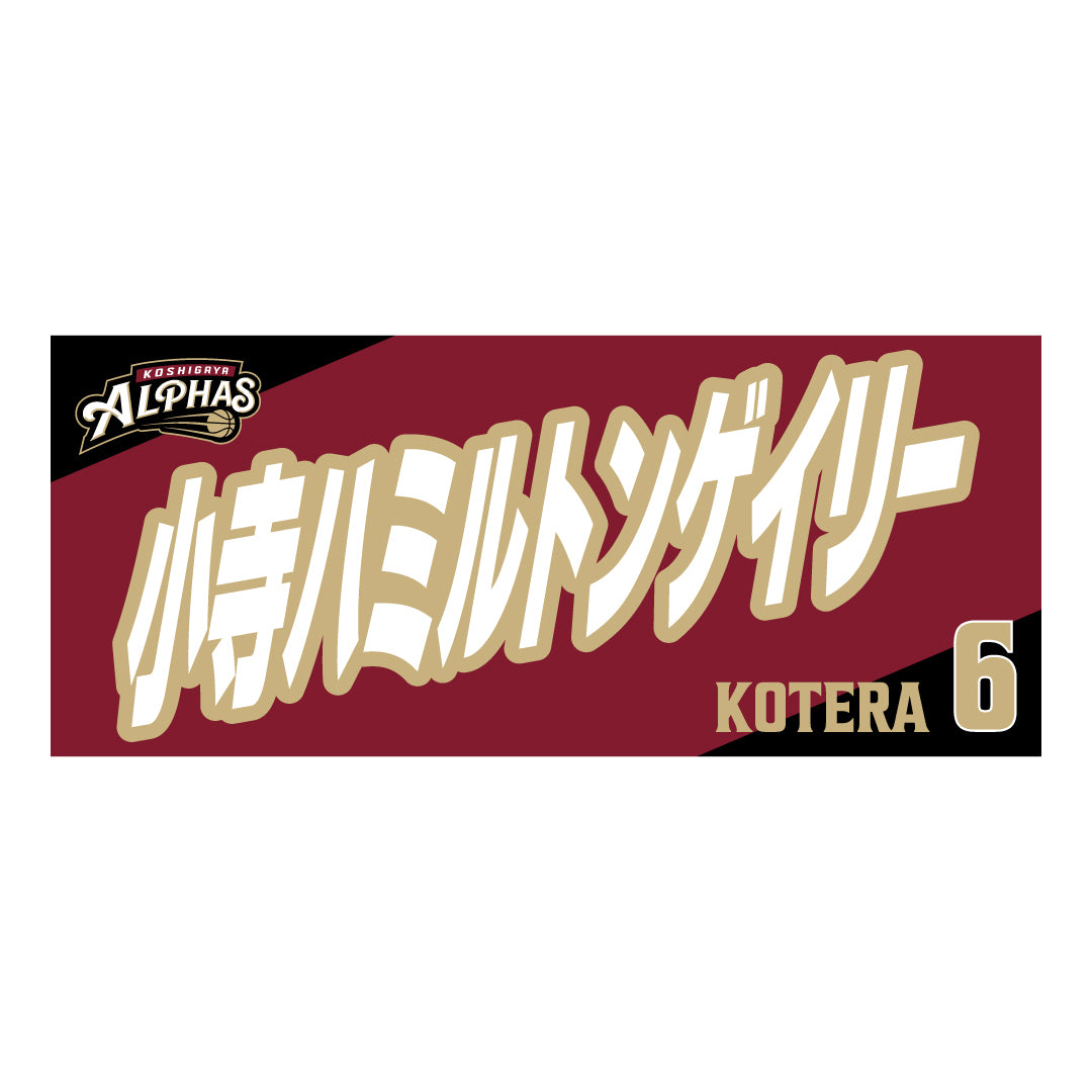 2025-26シーズンの越谷アルファーズ所属選手およびHC、マスコットのナンバーとネームをプリントしたスポーツタオル。